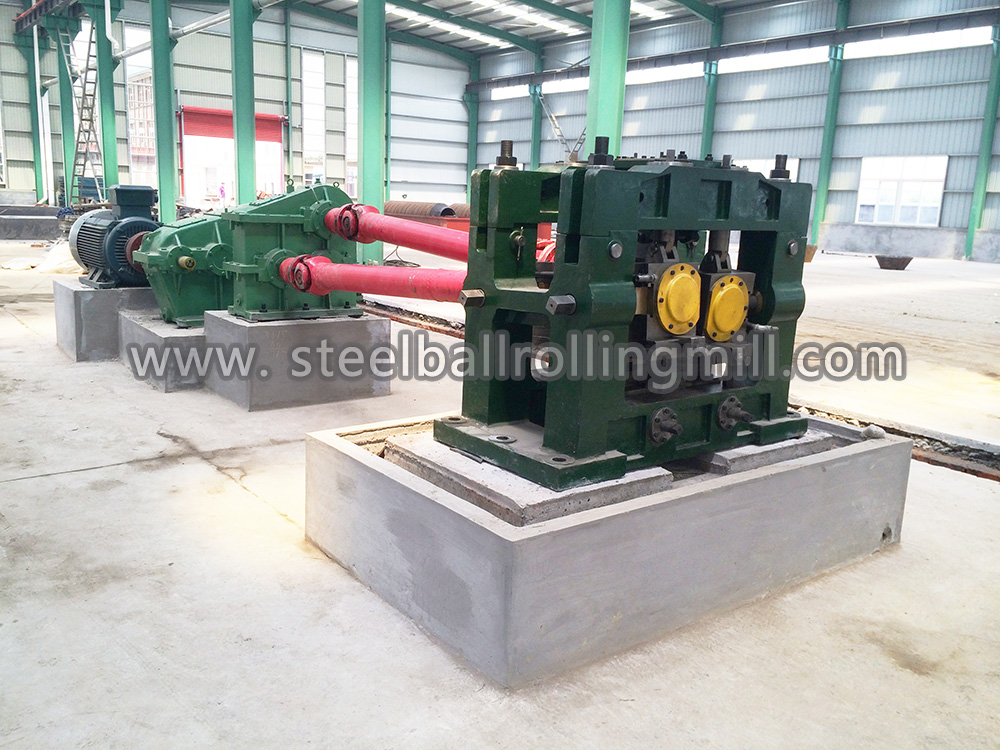 軋輥軸線與軋制線傾斜一定角度。軋輥上有螺旋孔型。軋件螺旋前進(jìn)。在螺旋孔型作用下,圓鋼逐漸變成球形,球形間連接頸部分越來越細(xì),最后斷開而獲得鋼球。軋后的鋼球經(jīng)過進(jìn)一步熱處理后即得到成品鋼球。