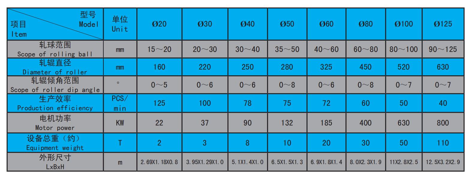 鋼球軋機主要技術參數:
