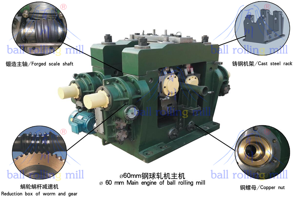 3、軋球機采用鑄鋼半閉式機架、機座剛性好、不變形;